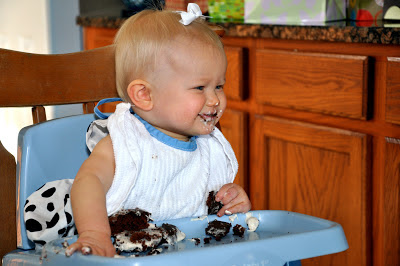 In the end, though, it was a winner! She loved her first taste of chocolate. She ate about 3/4 of the whoopie pie before looking at us and saying "all done!"